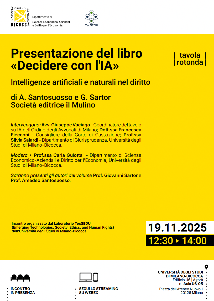 Round Table – Presentation of the Book Decidere con l’IA. Intelligenze artificiali e naturali nel diritto