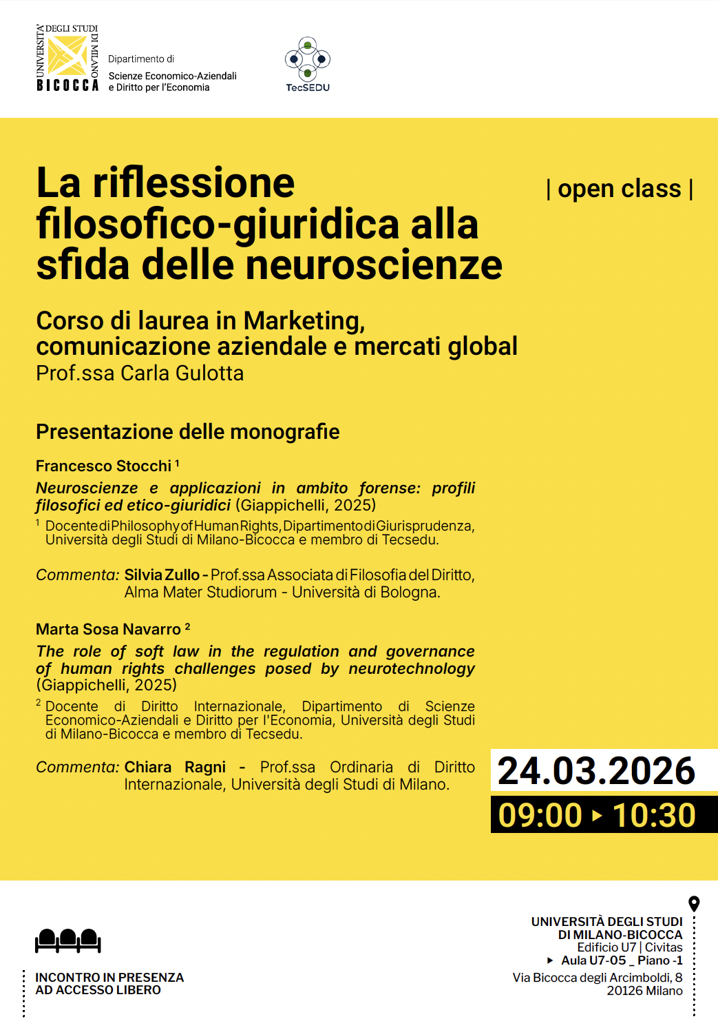 La riflessione filosofico-giuridica alla sfida delle neuroscienze 24 marzo 2026 | 09:00 – 10:30Università degli Studi di Milano-BicoccaEdificio U7 – […]